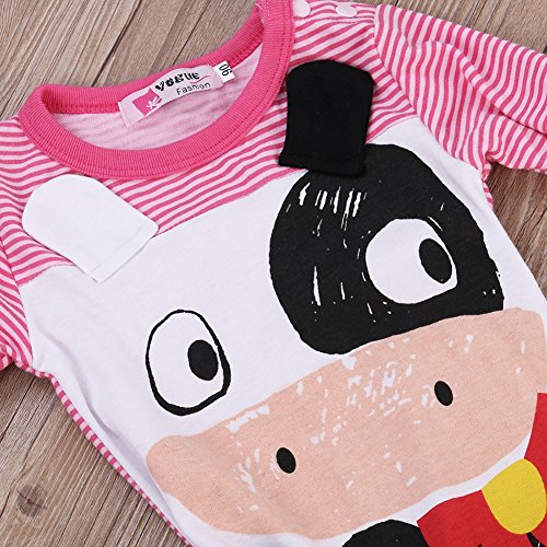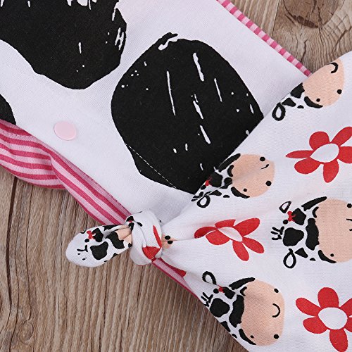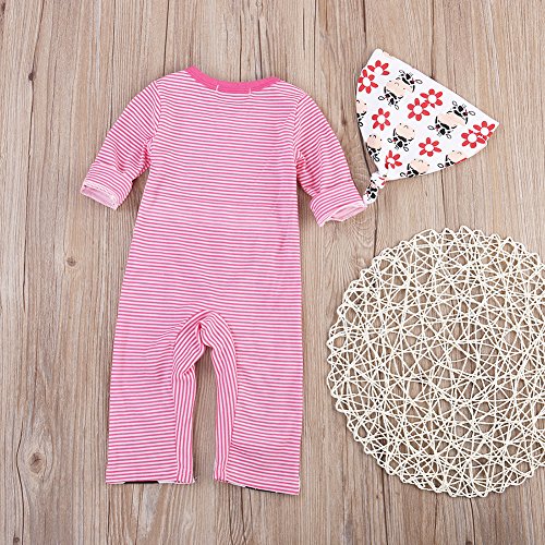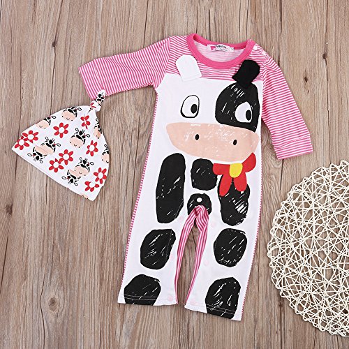 ベビー 子供服 綿 長袖 ロンパース 帽子 乳牛プリント 2点セット 超柔らかい 可愛い 赤ちゃん 出産祝い 普段着 0-24M (90, レッド)
