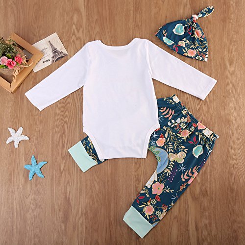 ベビー 子供服 綿 ロンパース ロングパンツ 帽子付き 3点セット 超可愛い 花柄 兎 蝶 月プリント 柔らかい 赤ちゃん服 出産祝い 普段着 パジャマ (80)