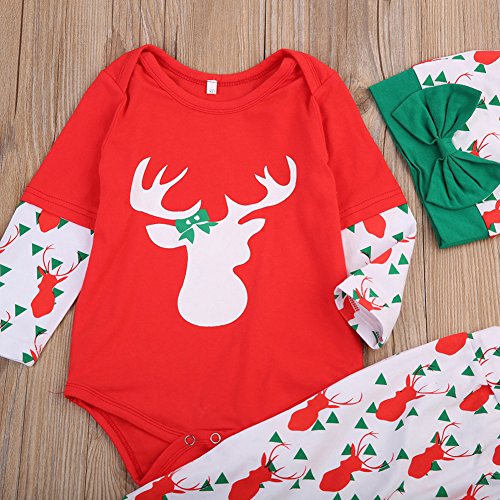 ベビー 子供服 綿 長袖 ロンパース ロングパンツ 帽子付き 3点セット 可愛い トナカイ プリント 超柔らかい 春秋冬 女の子 男の子 赤ちゃん 新生児 出産祝い 普段着 パジャマ (70)
