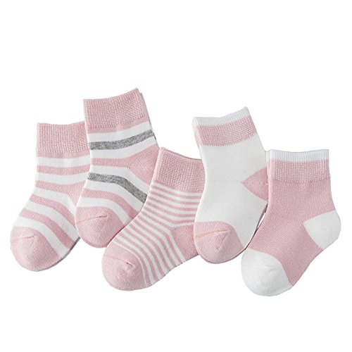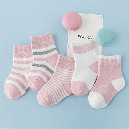 ベビー 子供 ソックス 可愛い 赤ちゃん おしゃれ ストライプ 綿ソックス 吸湿速乾 抗菌 防臭 靴下 5足セット (M, ピンク)