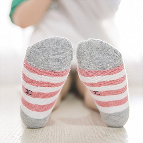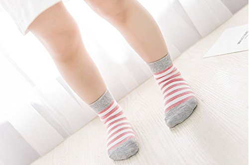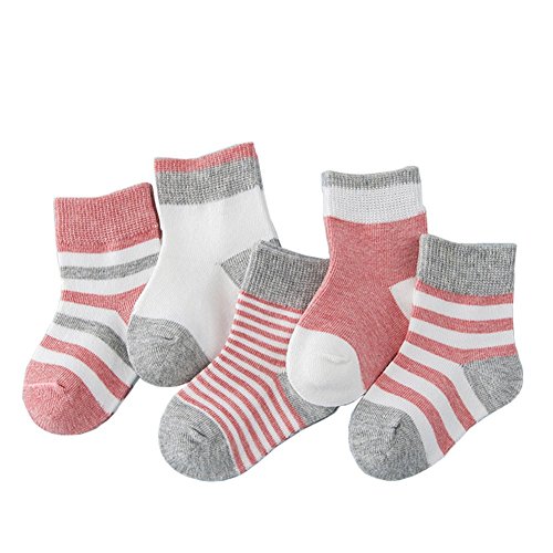 ベビー 子供 ソックス 可愛い 赤ちゃん おしゃれ ストライプ 綿ソックス 吸湿速乾 抗菌 防臭 靴下 5足セット (S, レッド)