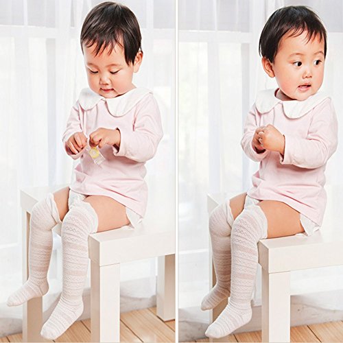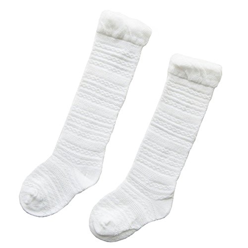 子供 ベビー 靴下 ハイソックス 可愛い上品なデザイン キッズ 女の子 綿ソックス 薄地 吸湿 抗菌 無地 (M, ホワイト)