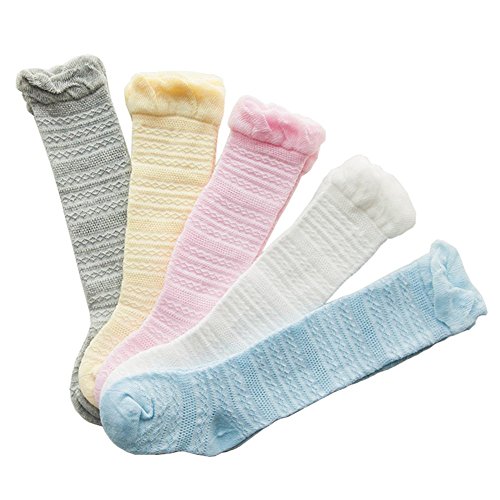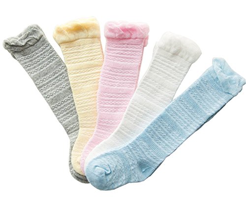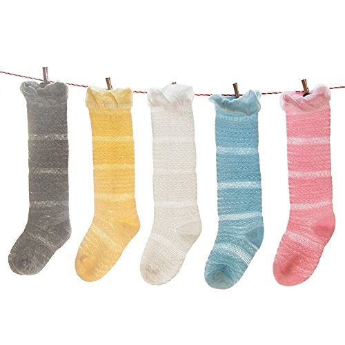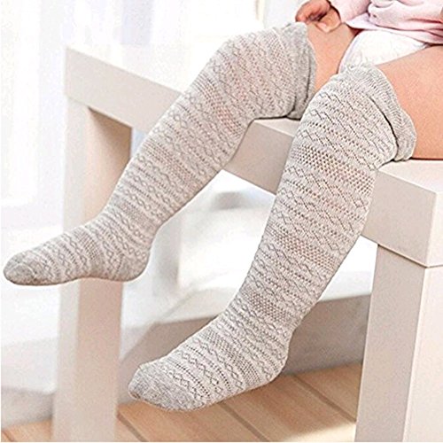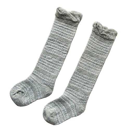 子供 ベビー 靴下 ハイソックス 可愛い上品なデザイン キッズ 女の子 綿ソックス 薄地 吸湿 抗菌 無地 (M, グレー)