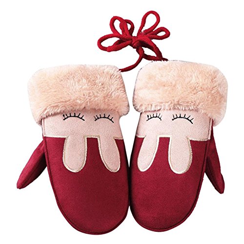 ベビー 子供用 手袋 ミトン キッズ かわいい ウサギ 子供 グローブ 女の子 男の子 手袋 雪遊び お散歩 滑り止め 秋冬 防寒 通学 通園 プレゼント (レッド)