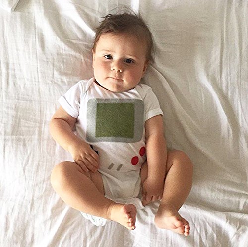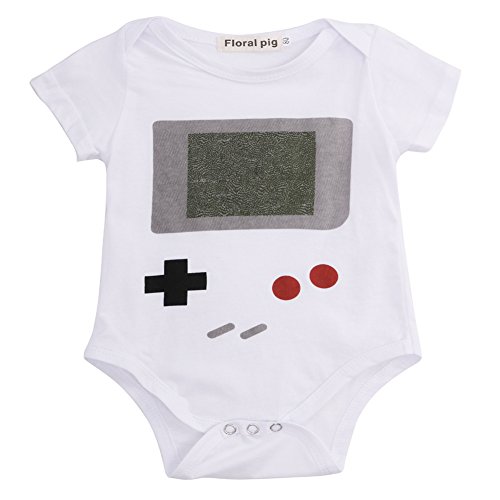 ベビー 子供服 半袖 綿 ロンパース おもしろいゲーム機プリント 超柔らかい 男の子 女の子 出産祝い 普段着 お着替え簡単 (80)