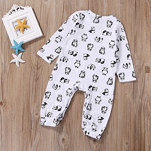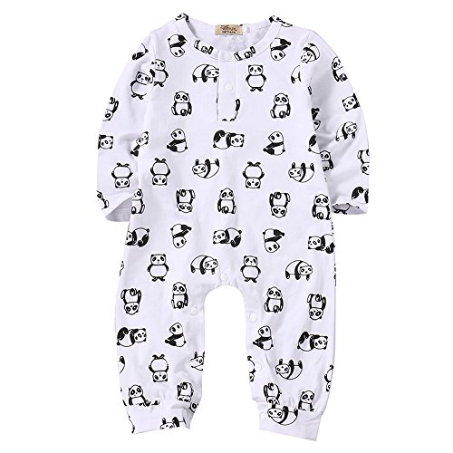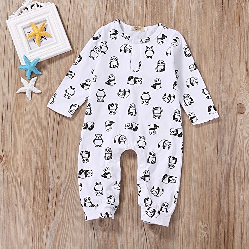 ベビー 子供服 カバーオール 長袖 ロンパース 可愛い パンダプリント 超柔らかい カジュアル 赤ちゃん 新生児 出産祝い 普段着 (100)