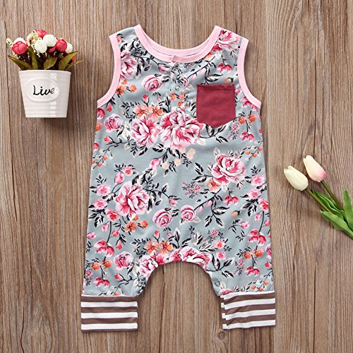 ベビー 子供服 女の子 綿 ロンパース 可愛い 花柄 超柔らかい 新生児 カバーオール 赤ちゃん服 出産祝い 普段着 プレゼント 0~24ヶ月 (80, グリーン)