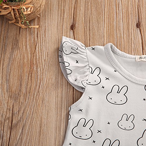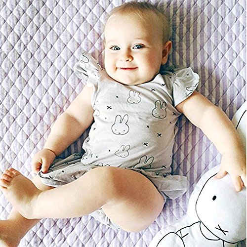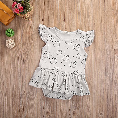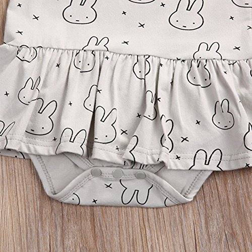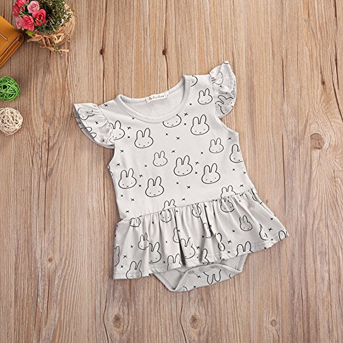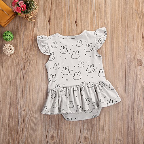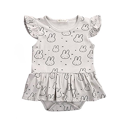 ベビー 子供服 女の子 ロンパース 飛び袖 可愛い ウサギ プリント 赤ちゃん服 ドレス カバーオール 新生児 出産祝い 普段着 パジャマ プレゼント 0~24ヶ月 (80)