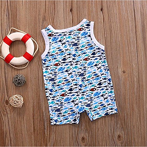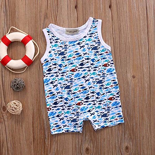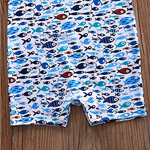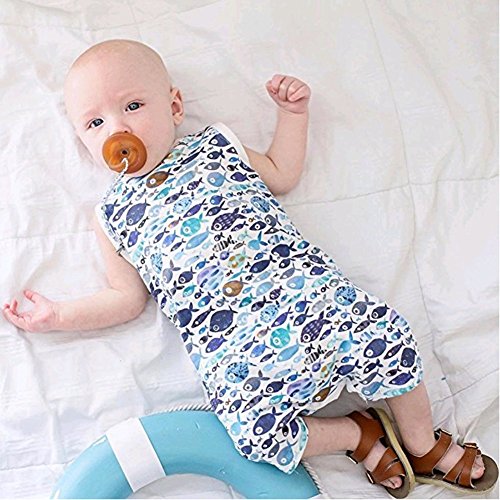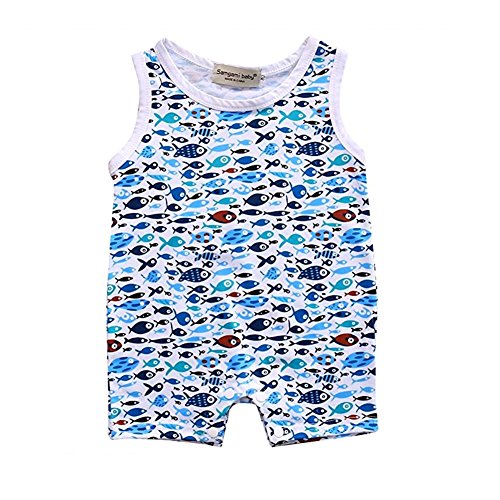 ベビー 子供服 ロンパース カバーオール 可愛い サメ 魚柄 超柔らかい 赤ちゃん 新生児 出産祝い 普段着 パジャマ コットン 0-24ヶ月 (100, 小魚)