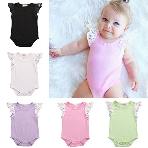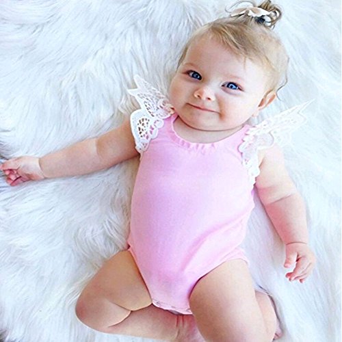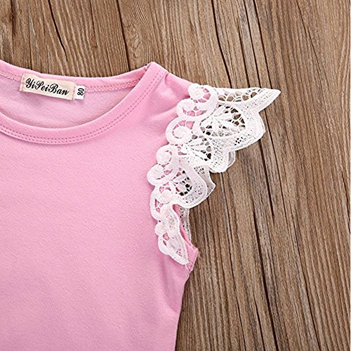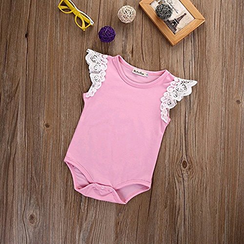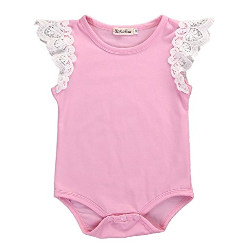 ベビー 子供服 ロンパース 女の子 男の子 カバーオール レース飛び袖 無地 超柔らかい 可愛い 赤ちゃん 新生児 出産祝い 普段着 0~24ヶ月 (90, ピンク)