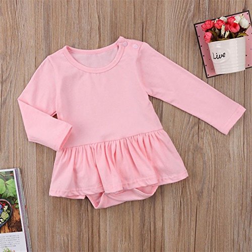 ベビー 子供服 女の子 綿 長袖 無地 ロンパース 超柔らかい 可愛い 赤ちゃん 新生児 出産祝い 普段着 0~24ヶ月 (90-ピンク)