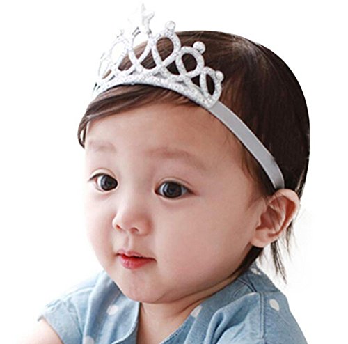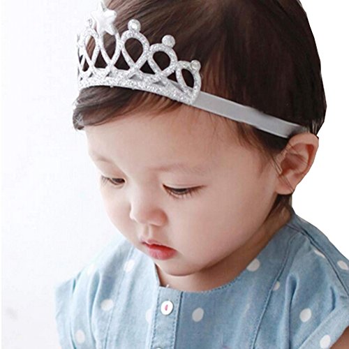 桜の顔 ティアラ風 ベビーヘアバンド 誕生日 お食い初め 星 ベビー用 クラウン 王冠 (シルバー)