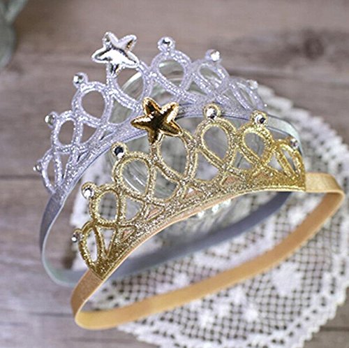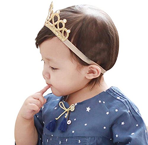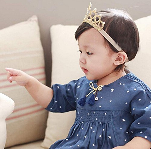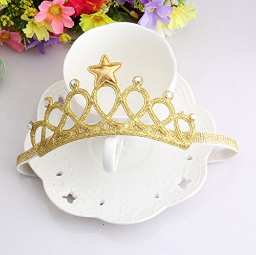 桜の顔 ティアラ風 ベビーヘアバンド 誕生日 お食い初め 星 ベビー用 クラウン 王冠 (ゴールド)