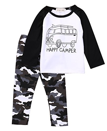 ベビー 子供服 綿 長袖 Tシャツ 迷彩服ロングパンツ 2点セット 超柔らかい カコイイ 赤ちゃん 男の子 出産祝い 普段着 ファション (110)
