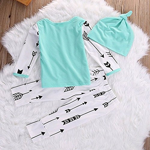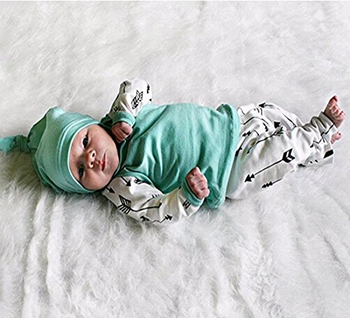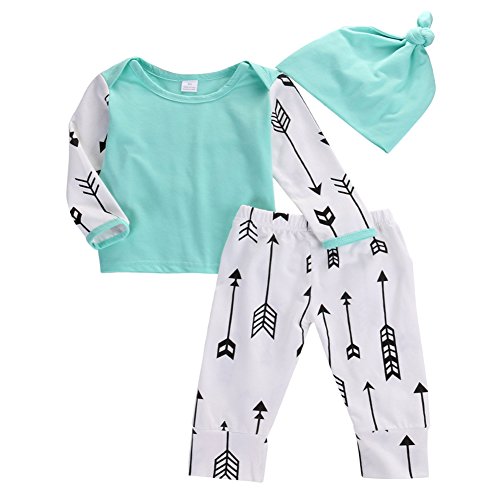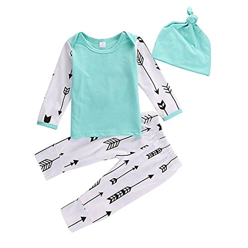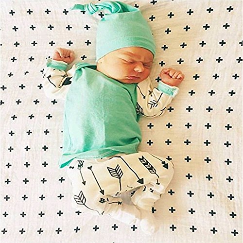 ベビー 子供服 長袖Tシャツ ロングパンツ 帽子付き 3点セット 矢印 プリント 超柔らかい 可愛い 赤ちゃん服 春秋冬用 出産祝い 普段着 (90)