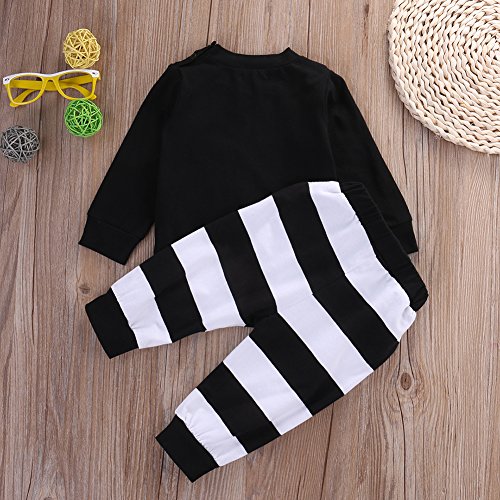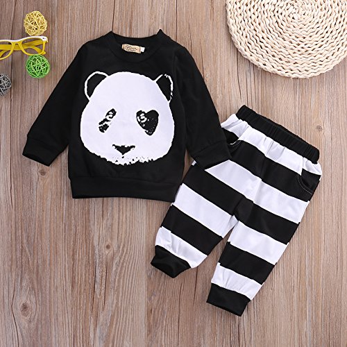 ベビー 子供服 長袖Tシャツ ロングパンツ 2点セット パンダプリント 縞模様 超柔らかい 可愛い 春秋冬用 赤ちゃん服 出産祝い (70)