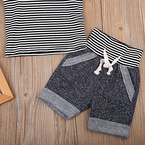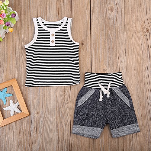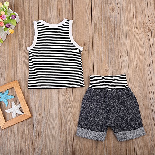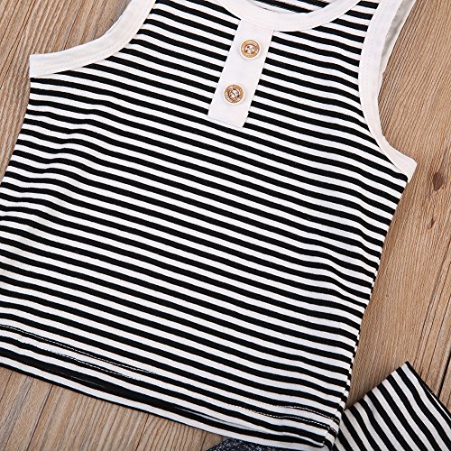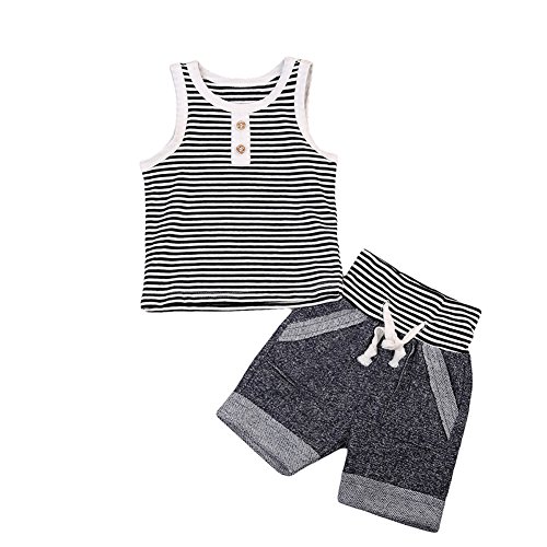 ベビー 子供服 綿 縞模様 袖なし タンクトップ ショートパンツ 2点セット 超柔らかい ファッション 赤ちゃん 出産祝い 普段着 (100)
