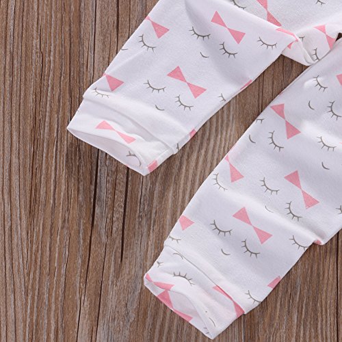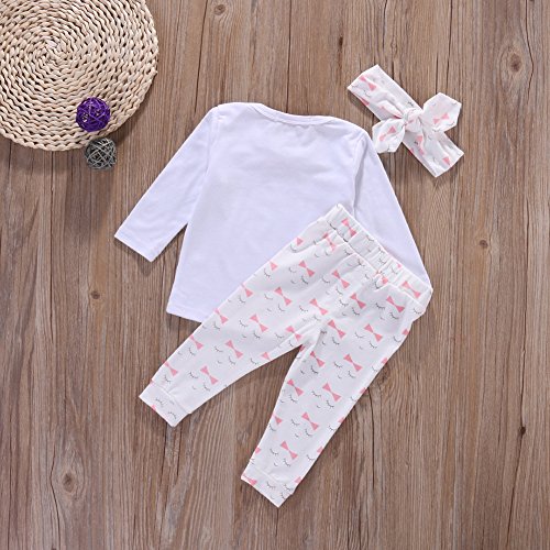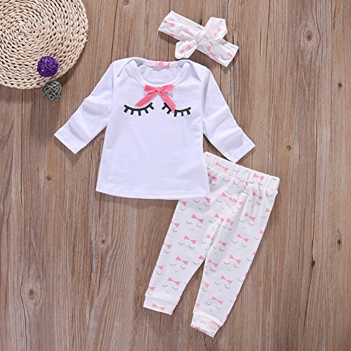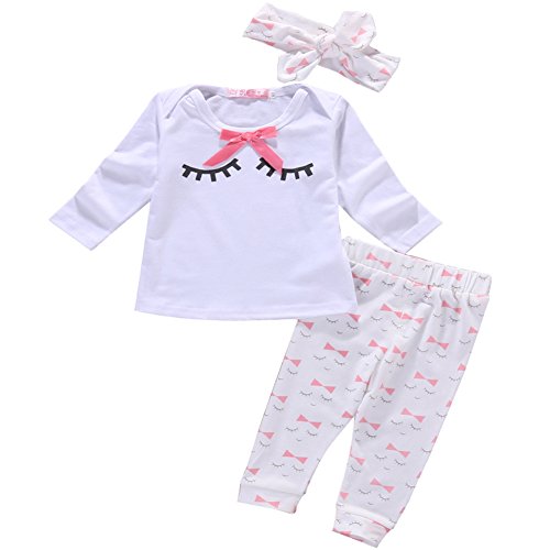 ベビー 子供服 綿 長袖Tシャツ ロングパンツ ヘッドバンド 3点セット 蝶結び まつげプリント 超柔らかい 可愛い 女の子 出産祝い 普段着 秋冬パジャマ (100)