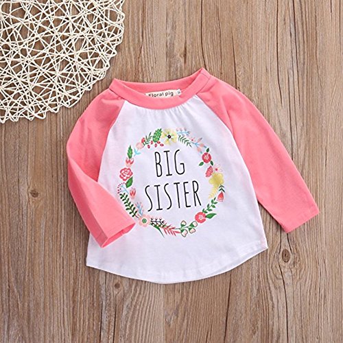 ベビー 子供服 綿 長袖 Tシャツ 超可愛い 花柄 英語文字 プリント キッズ 女の子 tシャツ 赤ちゃん服 柔らかい パジャマ カジュアル 普段着 秋冬 (ピンク, 110)