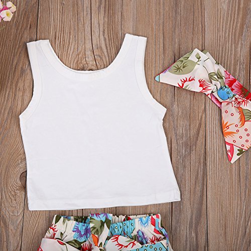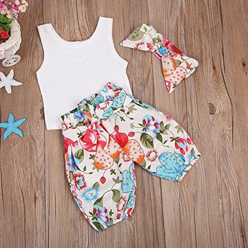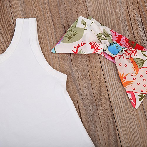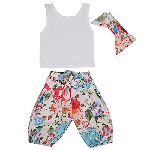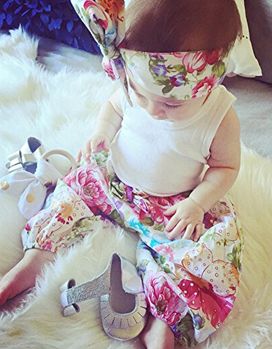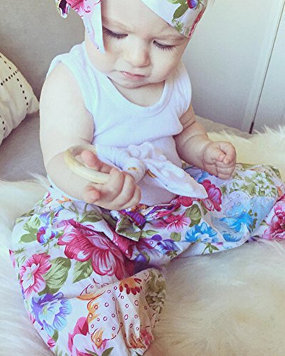 子供服 ベビー服 夏タンクトップ 花柄ズボン 上下 2点セット + ヘアバンド (0~6ヶ月)