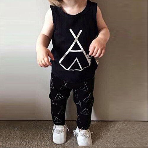 ベビー 子供服 綿 夏 タンクトップ ロングパンツ ファッション 2点セット 赤ちゃん ノースリーブ 爽やか 出産祝い 普段着 (70)