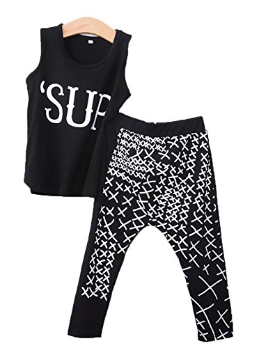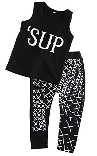 欧米風ベビー服 上下セット シャツ アルファベットパターン柄 男女兼用 Tシャツ+ロングパンツ 2点セット かわいい クール 綿 (100=2-3歳)