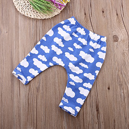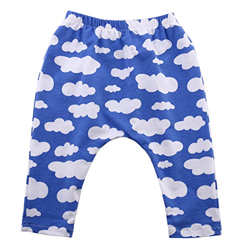 ベビー 子供 ロングパンツ 女の子 男の子 ズボン 出産祝い 可愛い 雲 プリント カジュアルスタイル (90, ブルー)