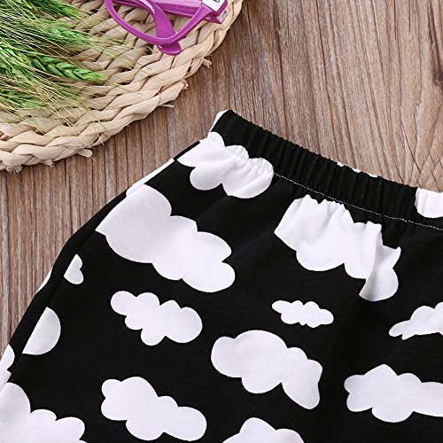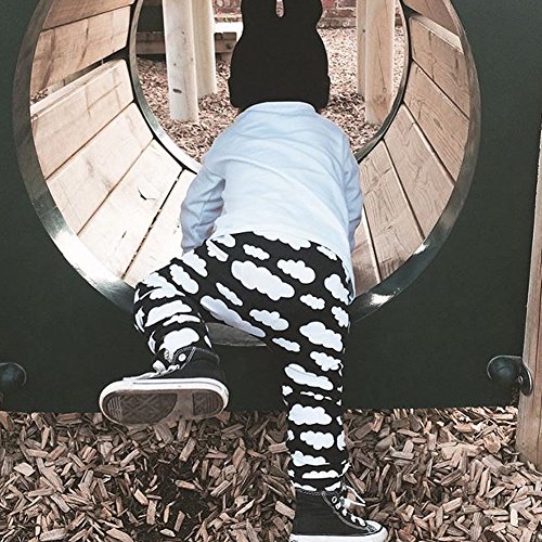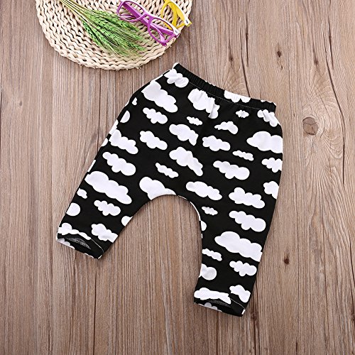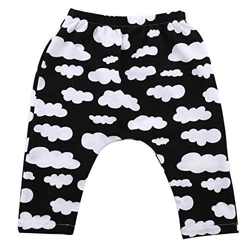 ベビー 子供 ロングパンツ 女の子 男の子 ズボン 出産祝い 可愛い 雲 プリント カジュアルスタイル (80, ブラック)
