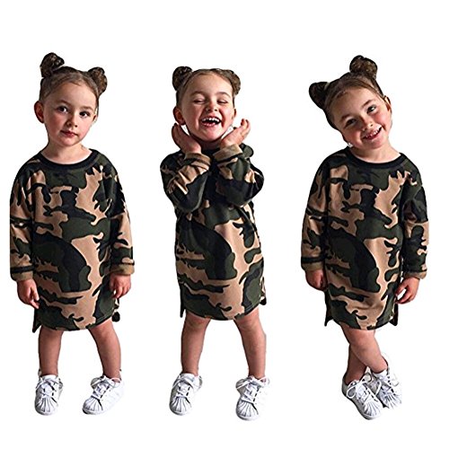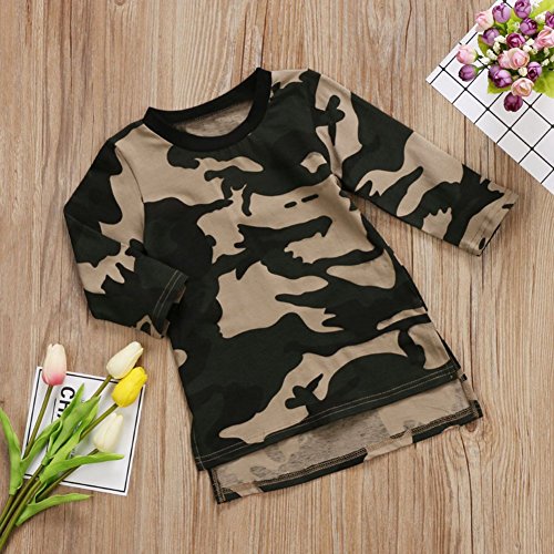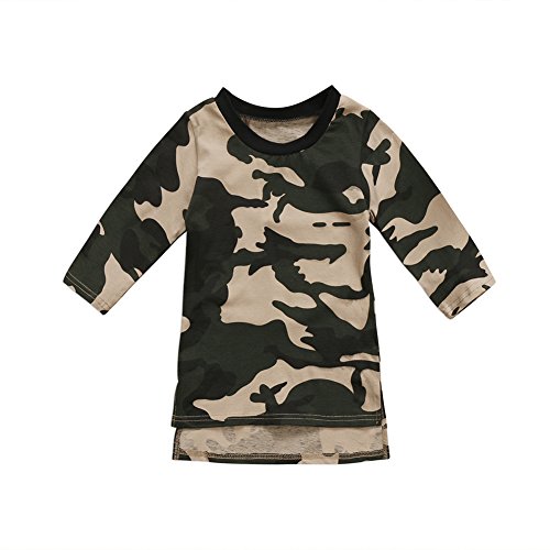ベビー 子供服 綿 長袖 ワンピース 迷彩柄 ドレス 超柔らかい 可愛い 女の子 チュニック 秋冬 オシャレ 通園 発表会 旅行 記念日 プレゼント 0-3歳 (120)