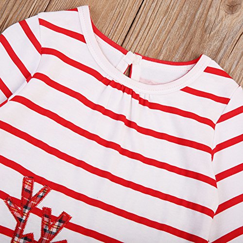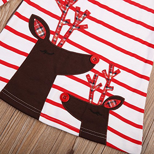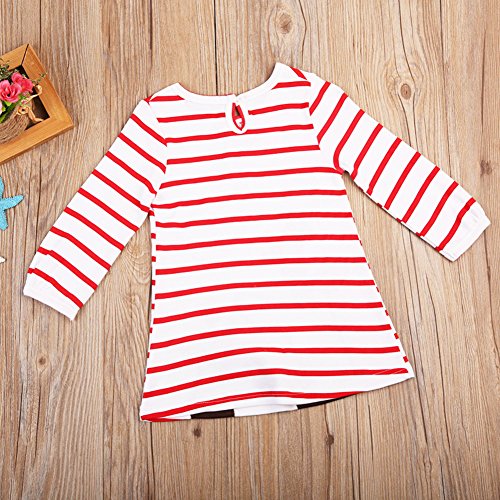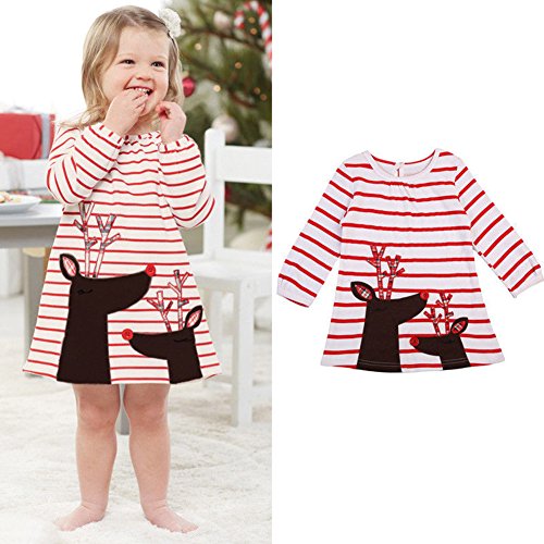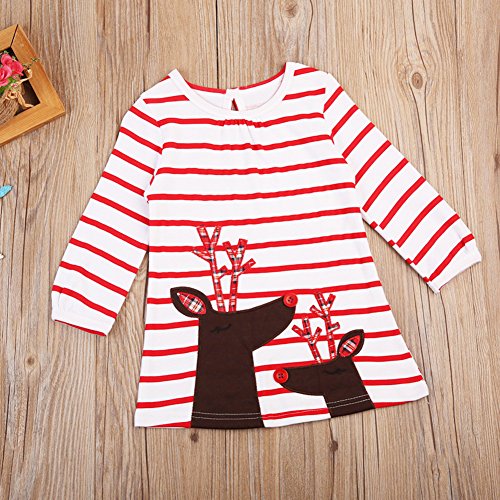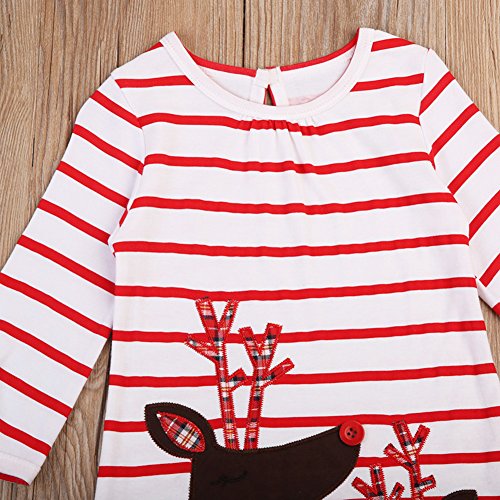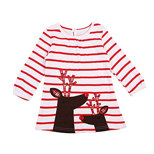 ベビー 子供服 綿 長袖 ワンピース こども 女の子 ドレス トナカイ 縞模様 クリスマス風 超柔らかい 可愛い キッズ ドレス 通園 発表会 旅行 記念日 プレゼント (100)