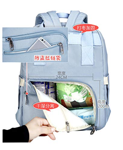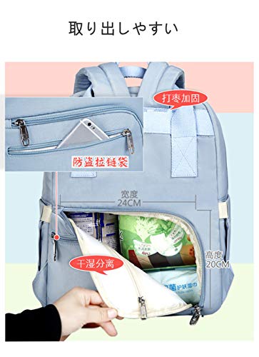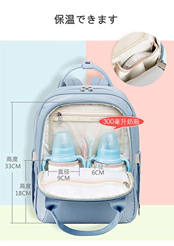 森の日和ママバッグ レディースバッグ おしゃれなナイロン大容量軽量マザーズリュック保温ポケット付き出産祝い (ライトブルー)