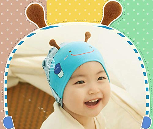 秋新生児帽子かわいい赤ちゃん男の子女の子コットン3d ビーキャップ (ブルー)