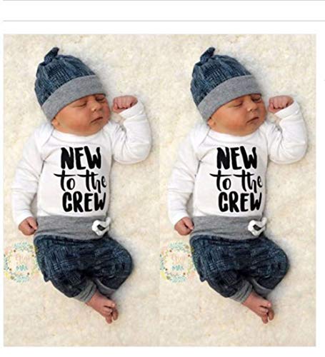 - 素材:上品なコットンブレンド、 "NEW TO THE CREW"レタープリントホワイト長袖、ブルーパンツ、ハット三点セット。