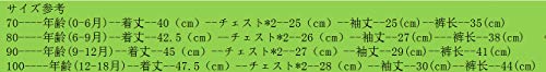 80----年齢(6-9月)--着丈--42.5(cm)--チェスト*2--26(cm)--袖丈--27(cm)---裤长--38(cm)
