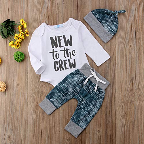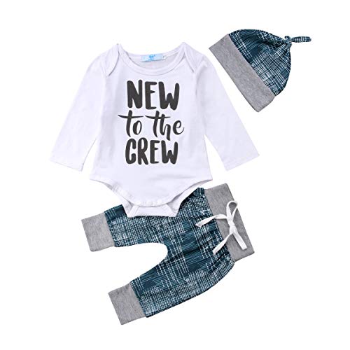 - 素材:上品なコットンブレンド、 "NEW TO THE CREW"レタープリントホワイト長袖、ブルーパンツ、ハット三点セット。