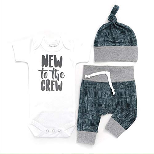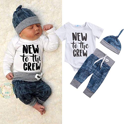 - 素材:上品なコットンブレンド、 "NEW TO THE CREW"レタープリントホワイト上着、ブルーパンツ、ハット三点セット。