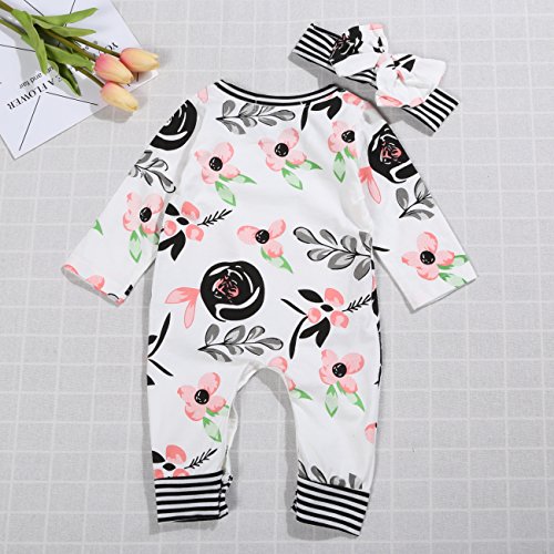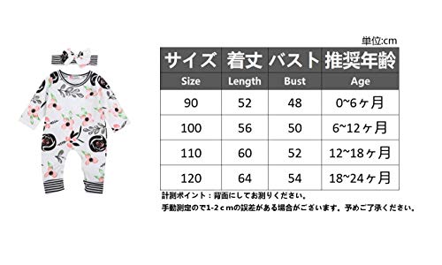 森の日和ベビー服女の子 ロンパース ヘッドバンド 2点セット 長袖 スナップボタン付き 花柄 可愛い 出産祝い (80(6-12ケ月))