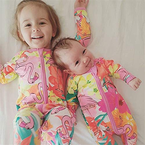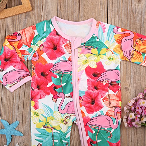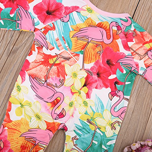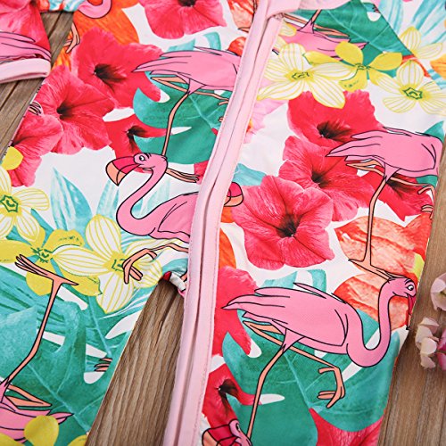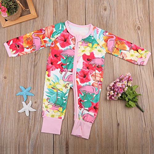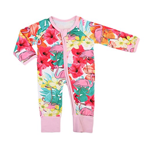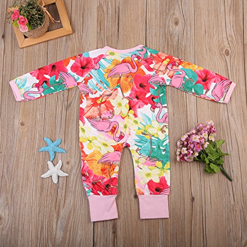 森の日和ベ森の日和ベビー服ロンパス赤ちゃんカバーオール前開き新生児長袖フラミンゴプリント春秋冬 (70(0-6ケ月))