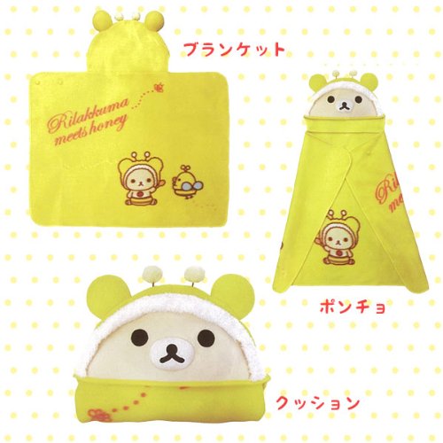 8(ハチ)年目を迎えるリラックマ。とろーり甘いハチミツにうっとり☆好きなものを好きなだけ…それがリラックマたちの「楽しい毎日」のヒケツ!つられて笑顔になってしまいそうな「ハニー&スマイル」シリーズです。広げて膝掛けブランケットに…ボタンを留めてポンチョ風に…たためばクッション風に!コリラックマのキュートなあったかグッズ、3WAYフリースです!冬場や夏の冷房対策に。ほっこり和やかな気持ちにさせてくれる可愛さデス♪