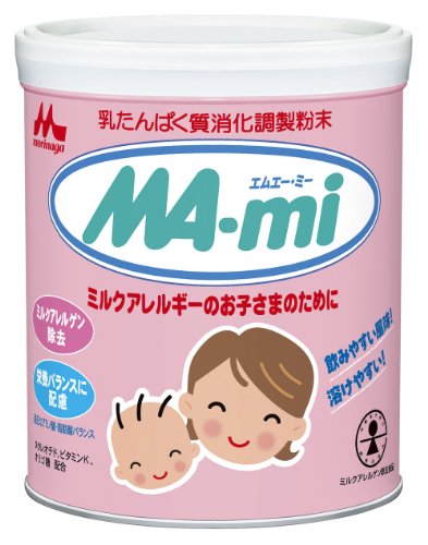 ●【商品説明】●「森永 MA-mi 850g」は、高度の酵素消化と膜ろ過によってアレルゲン性を低下した良質の乳たんぱく質消化物に、脂質、炭水化物、ミネラル、ビタミンなど、お子様の発育に必要な栄養素をバランス良く配合したミルクアレルギー用粉ミルク(アレルゲン除去食品)です。●育児用ミルク、牛乳などを与えて下痢や湿疹などの症状がでるお子さまにお使いいただけます。●【使用上の注意】●*本品は、医師に牛乳たん白質の摂取制限を指示された場合に限り、必ず医師、管理栄養士等のご使用に従ってお使い下さい。●本品はミルクアレルギーの食事療法の素材として適するものであり、本品を多く摂取することによって疾病が治癒するものではありません。●必ず缶に入っている専用スプーンをお使いください。●哺乳びん、乳首などの哺乳器具は他の育児用ミルクや牛乳、卵、大豆成分などが付着していない清潔なものをご使用ください。●標準的な使い方は、フタの表の使用量を目安にして、お子さまの成長、離乳の進み具合に合わせて量や回数を加減してください。●1回分ずつ調乳し、作りおきや飲み残しは与えないでください。●本品は、森永...