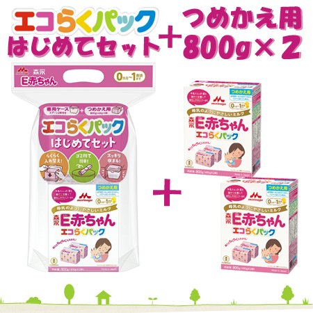 森永乳業 森永ペプチドミルク E赤ちゃん エコらくパック はじめてセット1個+つめかえ用 800g(400g×2袋) 2セット