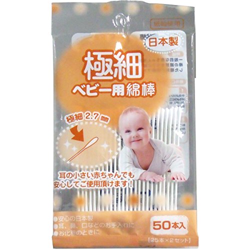 極細ベビー用綿棒! 耳の小さい赤ちゃんでも安心してご使用頂けます! 一般的な赤ちゃん用綿棒の綿球をさらに細くした極細の綿棒です! ●安心の日本製 ●赤ちゃんの耳や鼻のお手入れに ●お化粧の細部の仕上げに ●細かい部分の清掃に! ●極細2.7mm ※抗菌剤は使用しておりません 【原材料】 綿球部:脱脂綿 軸:紙 【主な用途】 ・赤ちゃんの耳や鼻のお手入れに・お化粧の細部の仕上げに ・細かい部分の清掃に