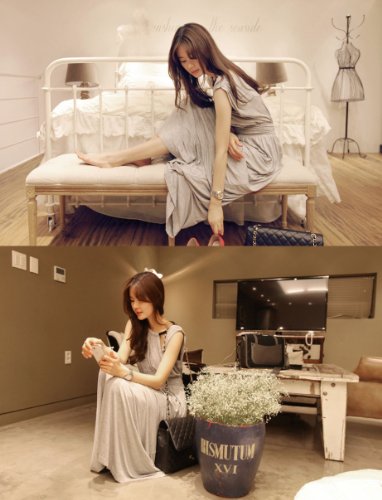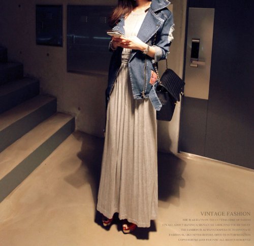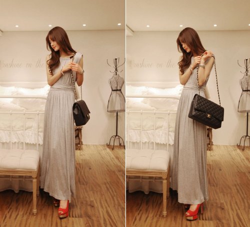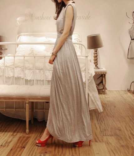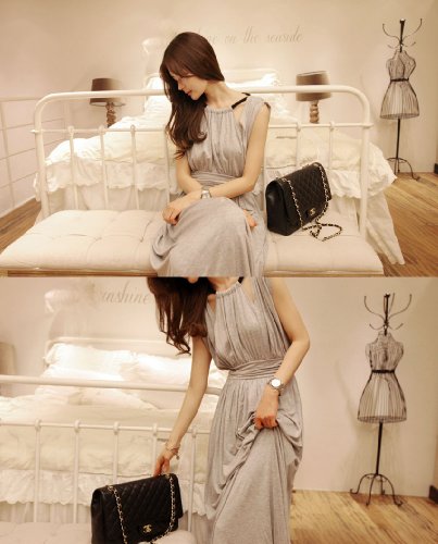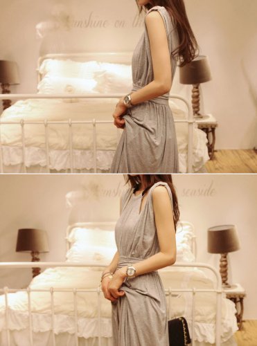 069-gr 2013新登場 ゆったり♪無地マキシ丈チュニックワンピース ノースリーブ/ロングスカート/タンクトップ フェミニンStyle♪ グレー 一枚入れ 並行輸入品