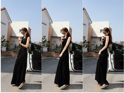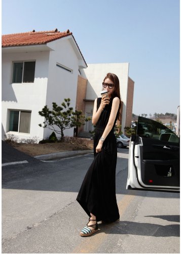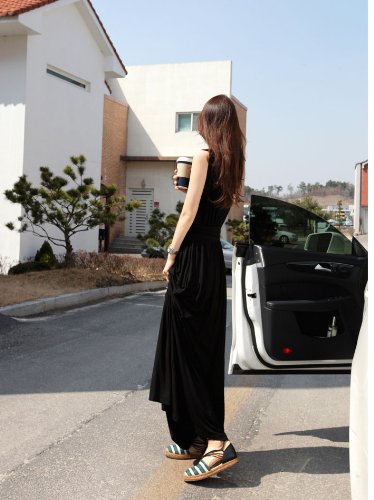 069-bl 2013新登場 肩開きSEXY♪無地マキシ丈チュニックワンピース ノースリーブ/ロングスカート/タンクトップ フェミニンStyle♪ ブラック 一枚入れ 並行輸入品
