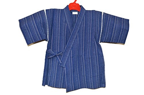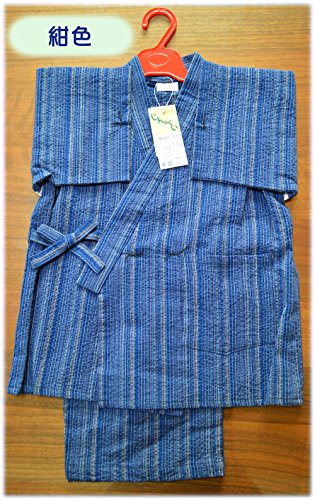 子供甚平 遠州しじら織 綿素材 ひのき素材 (M, 紺,3~4歳用,100㎝)