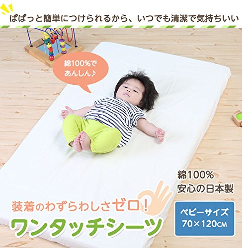 - ナチュラルな素材で安心の日本製のベビーワンタッチ フィットシーツ