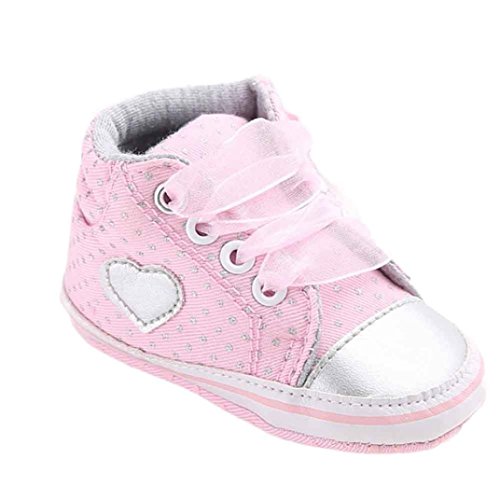 ベビーシューズ 歌を愛する ベビー靴 乳児靴 耐磨 温かい 可愛い 新生児 シューズ 赤ちゃん用 屋内靴 赤ちゃん ベビーキャンバスシューズハートシェイプスニーカーアンチスリップソフトソルト幼児 (11CM(0ヶ月~6ヶ月), ピンク)