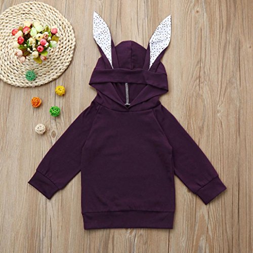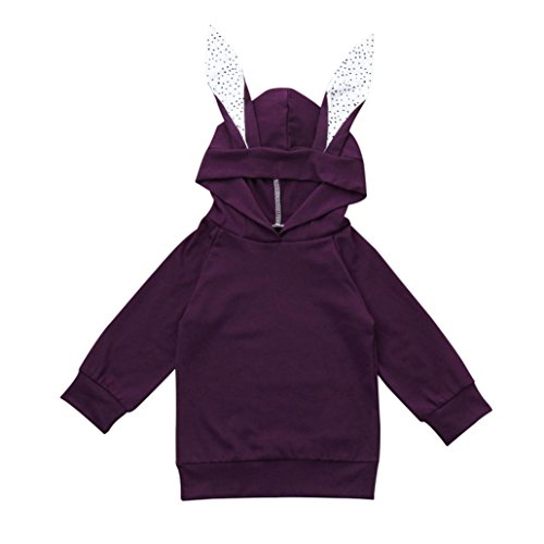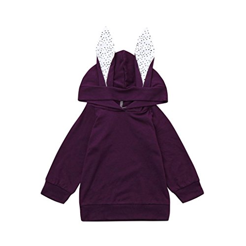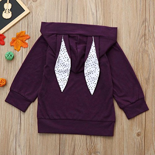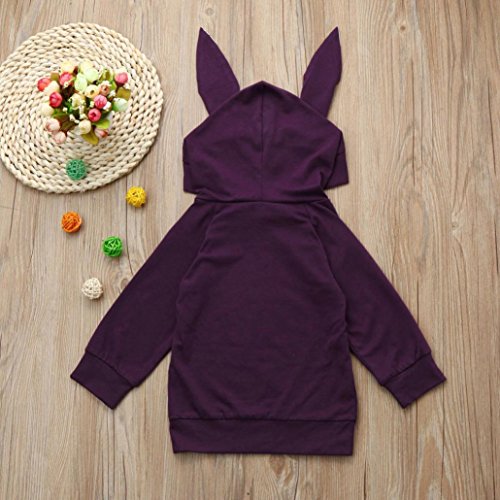 歌を愛する クリスマス特製 カわいい 子供服 冬の服 女の子 ウサギの耳が付き フード付き 長袖 厚手 ジャケット パープル 5サイズ キッズ服 ロンパース カバーオール プレゼント (1歳/90CM)