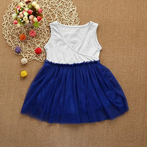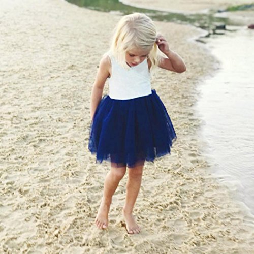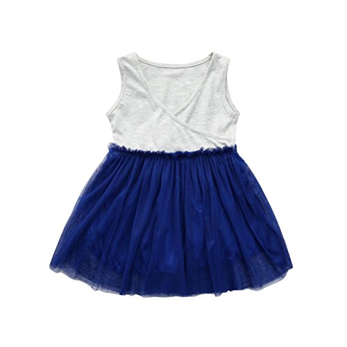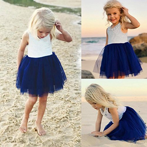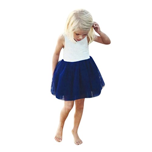 歌を愛する 2018夏 ドレス 女の子 ふわふわドレス 高品質 無袖 ドレス かわいい 丸首 ジッパー ワンピース エレガント プリンセスドレス2~8歳 (8歳, ブルー)