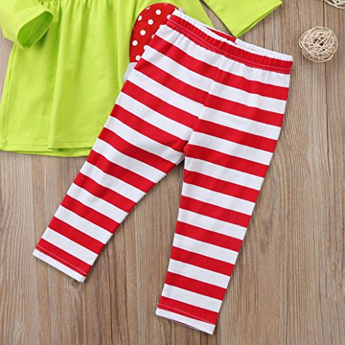 歌を愛する クリスマス子供の女の子シャツトップスパンツ2本のストライプの一式セット (110CM)
